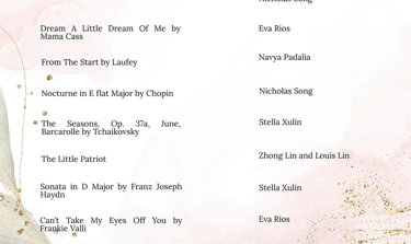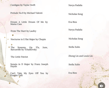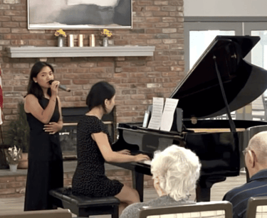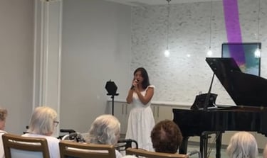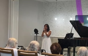 FMSA Scholars in Sound is a student organization that brings musical talents to local communities. I am the media director and also correspond to book events at senior centers and hospitals you can check out our social media @fmsa.scholarsinsound on Instagram. Beyond my technical roles, I'm also a solo vocalist on the team and have performed in 6 local senior centers and 2 hospitals. As a part of this organization I found my love for performing and connecting with others through music. There's little more special than watching the seniors dance to the song or sing along with Vienna, or Can't Take My Eyes Off You. I usually like picking classics that can bring back memories for my audience, but sometimes choose to share an original, which is always received so kindly. After performances, my favorite thing is to interview senior residents as they always have stories and wisdom to share. I've gained some valuable perspective on topics like romance, family, and change as a result of my performances.